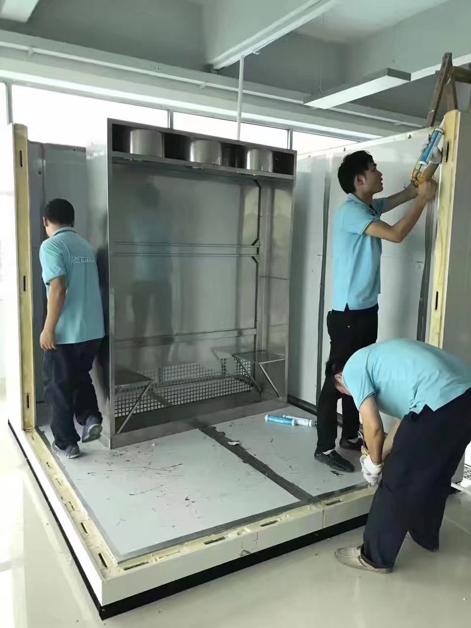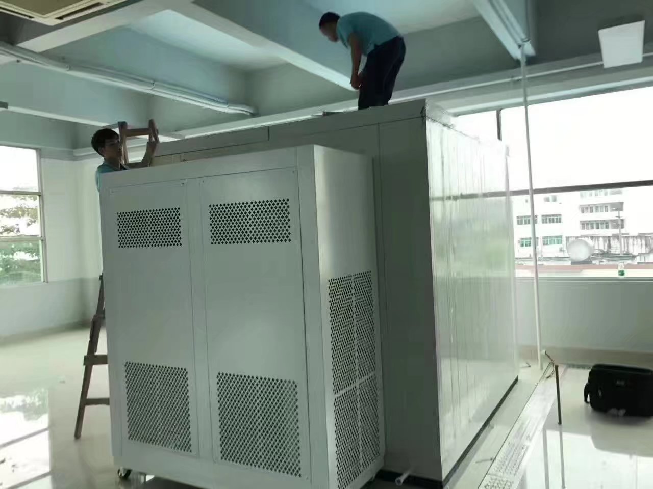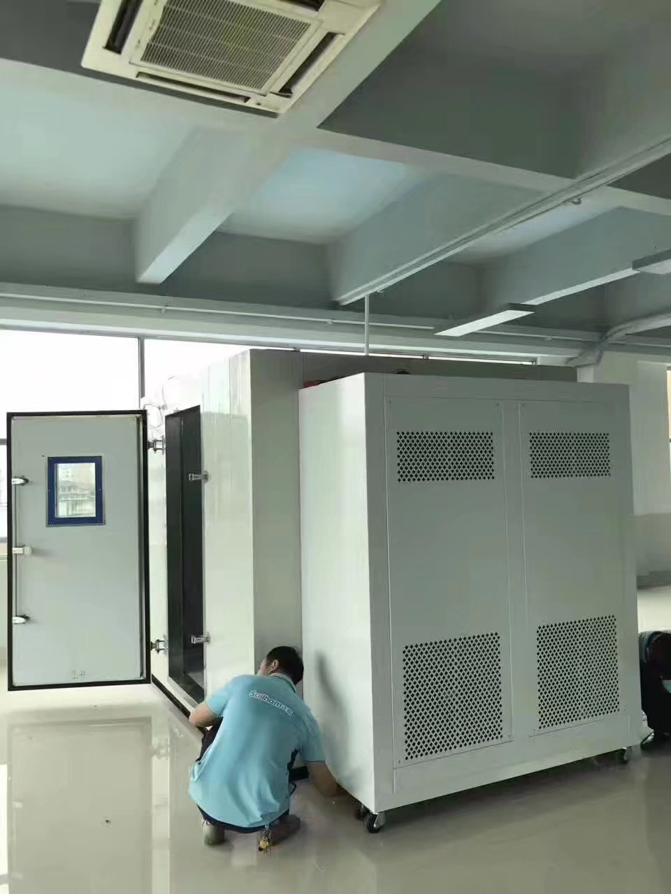 ,正航人精益求精,立足中國,走向國際!直播在客戶現場安裝大型步入式恒溫恒濕室。