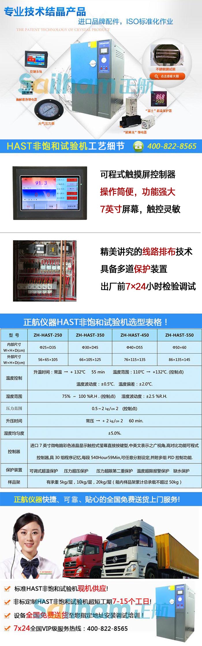 HAST非飽和高壓加速試驗機 HAST非飽和高壓加速試驗機適用于國防、航天、汽車部件、電子零配件、塑膠、磁鐵行業、制藥、線路板,多層線路板、IC、LCD、磁鐵、燈飾、照明制品等產品之密封性能的檢測,相關之產品作加速壽命試驗,使用于在產品的設計階段,用于快